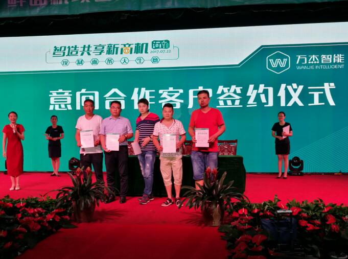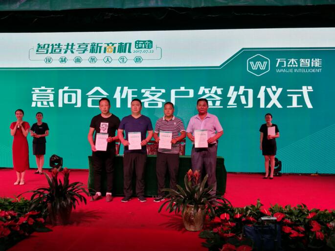 7月22日,智造共享新商機(jī),萬杰智能鮮面機(jī)河南大區(qū)定向招商大會在許昌成功落下帷幕。超過70家意向合伙人(170余人)齊聚本次招募大會,當(dāng)天有30余家意向合伙人簽訂合作意向書。