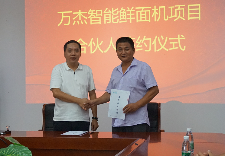 2017年8月4日,萬杰智能總部又迎來山東省兩位合作伙伴,山東省泰安市華任經貿有限公司劉總、山東省曲阜市鑫海商貿有限公司楊總分別與萬杰智能簽署了《智能鮮面機合伙人合作協(xié)議》。 此次,泰安、曲阜兩市的加入,標志著萬杰智能鮮面機項目山東市場正式開啟。至此,萬杰智能鮮面機全國招商突飛猛進,赤峰、新鄉(xiāng)、鄭州兩個區(qū)域、鶴壁、寧波、義烏、溫州、洛陽、大慶、許昌禹州市、泰安、曲阜相繼加入,全國招商工作屢獲佳績。 萬杰智能董事長王曉杰與山東省泰安市華任經貿有限公司劉總 萬杰智能董事長王曉杰與山東省曲阜市鑫海商貿有限公司楊總 山東省是我國面食大省,尤以打鹵面最為著名和正宗,現(xiàn)制鮮面條的出現(xiàn),將會為當?shù)匕傩彰媸成畹?/font>“安全、健康、營養(yǎng)”創(chuàng)造了更多可能。 得益于主食安全和模式創(chuàng)新,萬杰智能聚集了全國各地的事業(yè)合作伙伴,各個城市的合伙人與萬杰智能共同扛起“主食安全”的大旗?梢哉f,獲得收益,充其量只是門生意,而造福百姓,然后讓所有參與者共同受益,這才可稱得上是一份事業(yè)。萬杰智能鮮面機項目的合伙人正是這樣一支隊伍,做主食安全,為一方百姓,這份既有擔當,又前景可觀的事業(yè),誠邀全國地區(qū)意向合作伙伴。 萬杰智能主食機械——為億萬家庭主食安全服務!