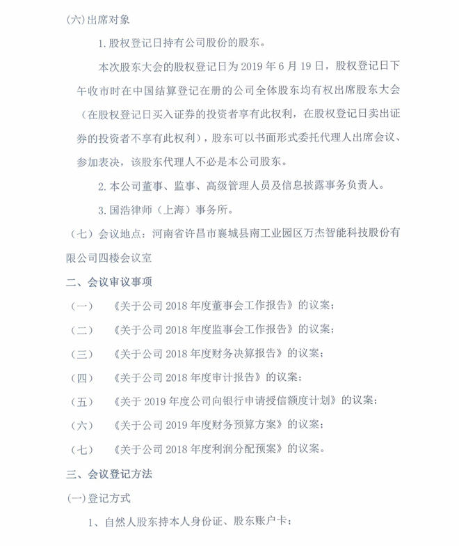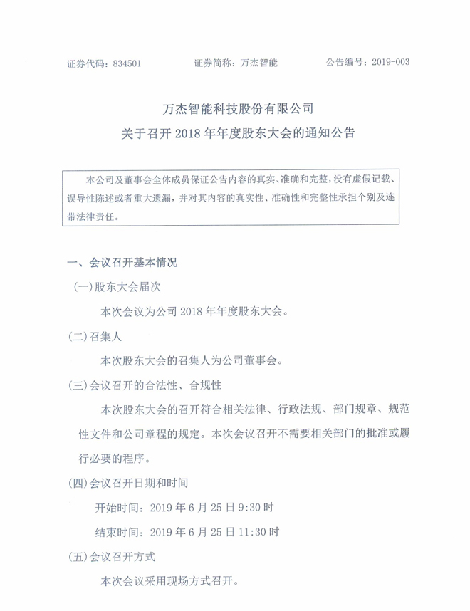 當(dāng)前位置: 首頁(yè) 新聞資訊 公司動(dòng)態(tài) 萬(wàn)杰智能:關(guān)于召開(kāi)2018年年度股東大會(huì)的通知公告