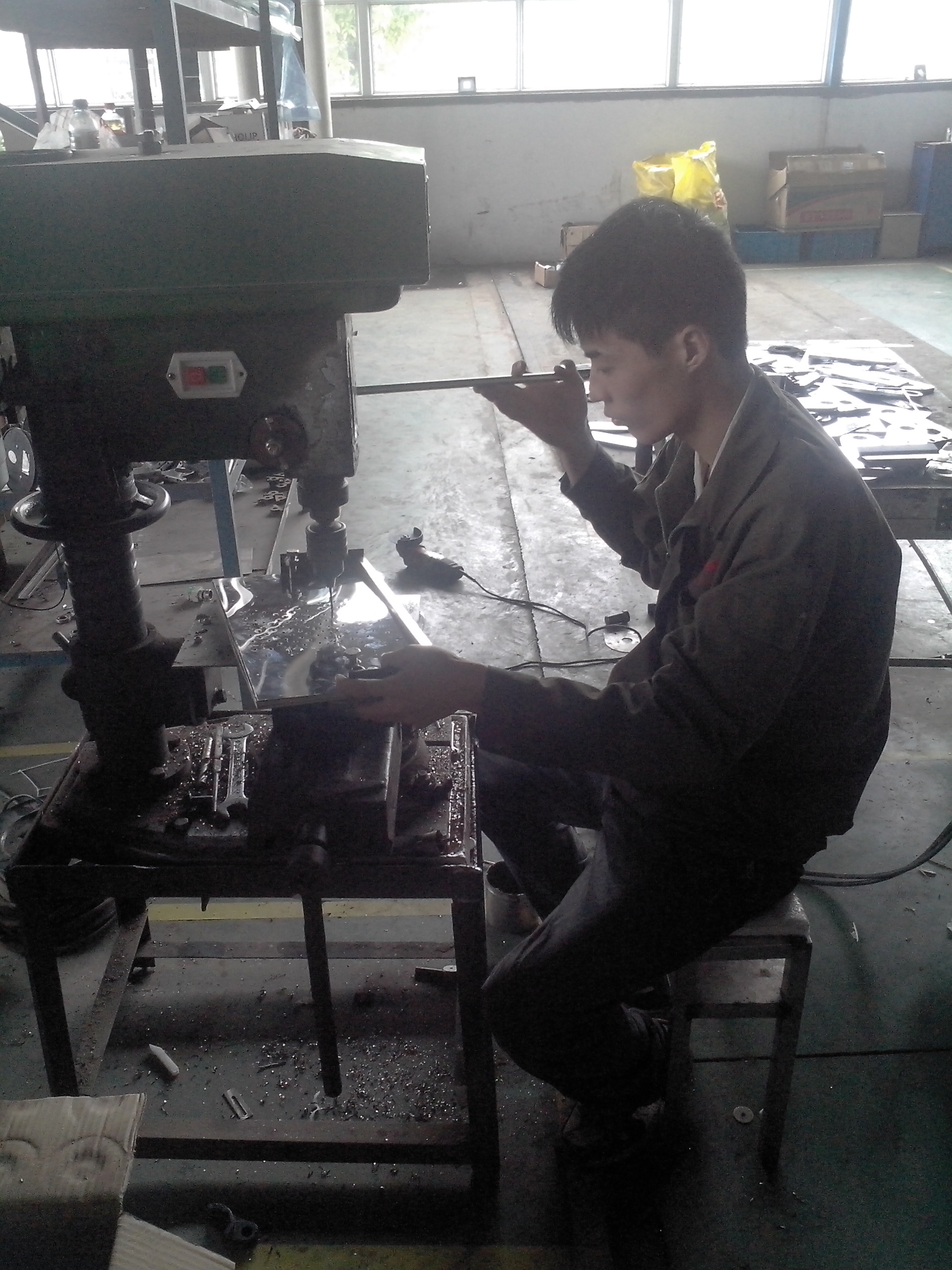 組裝車(chē)間職工宋占強(qiáng),于20129月份加入萬(wàn)杰。平常在組裝方饃機(jī)部件機(jī)頭邦時(shí),每次安裝方饃機(jī)底腳板總是要手拿底腳板比劃著號(hào)孔,這樣下來(lái)不但工作效率低、而且還有偏差;另外在每次安裝方饃機(jī)彈簧擋片時(shí),總是需要用手掰或用鉗子制出一個(gè)圓弧,安裝效率同樣很低,并且圓弧效果也不一致。宋占強(qiáng)經(jīng)過(guò)認(rèn)真思考與觀察,專(zhuān)門(mén)針對(duì)此兩道工序自制了兩套夾具,該夾具使用方便,號(hào)出來(lái)的孔位準(zhǔn),不僅制作出的彈簧擋片效果一致便于安裝,而且大大提高了生產(chǎn)效率!