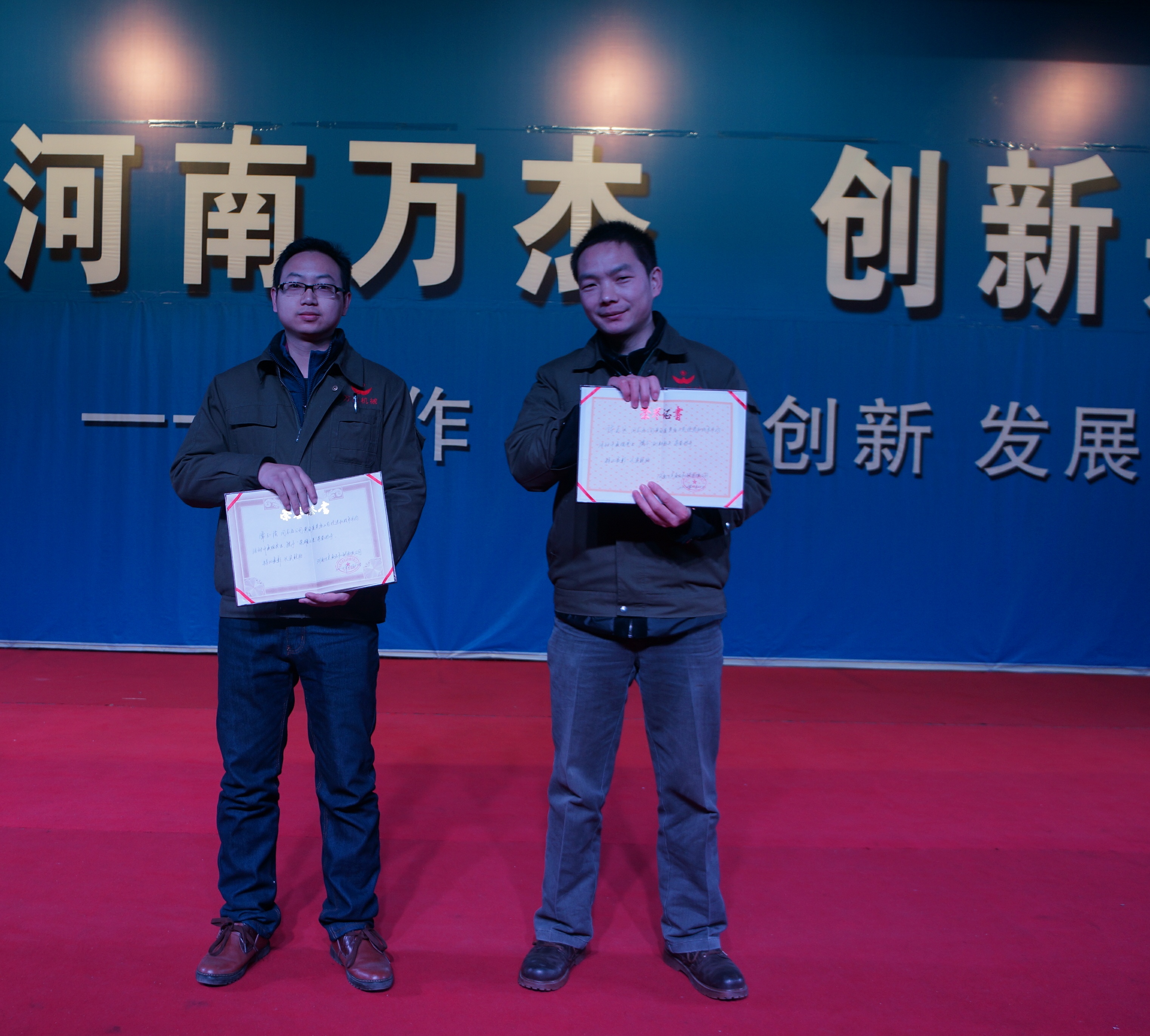 20131230日,公司在二樓演播大廳再次召開(kāi)了表彰大會(huì),授予品保部陳志遠(yuǎn)同志“創(chuàng)新標(biāo)兵”榮譽(yù)稱號(hào)、授予品保部常玉強(qiáng)同志“榮耀之星”榮譽(yù)稱號(hào),對(duì)黃金層蒸房改善小組獎(jiǎng)勵(lì)現(xiàn)金1000元。董事長(zhǎng)親自為其頒發(fā)榮譽(yù)證書和獎(jiǎng)金。
