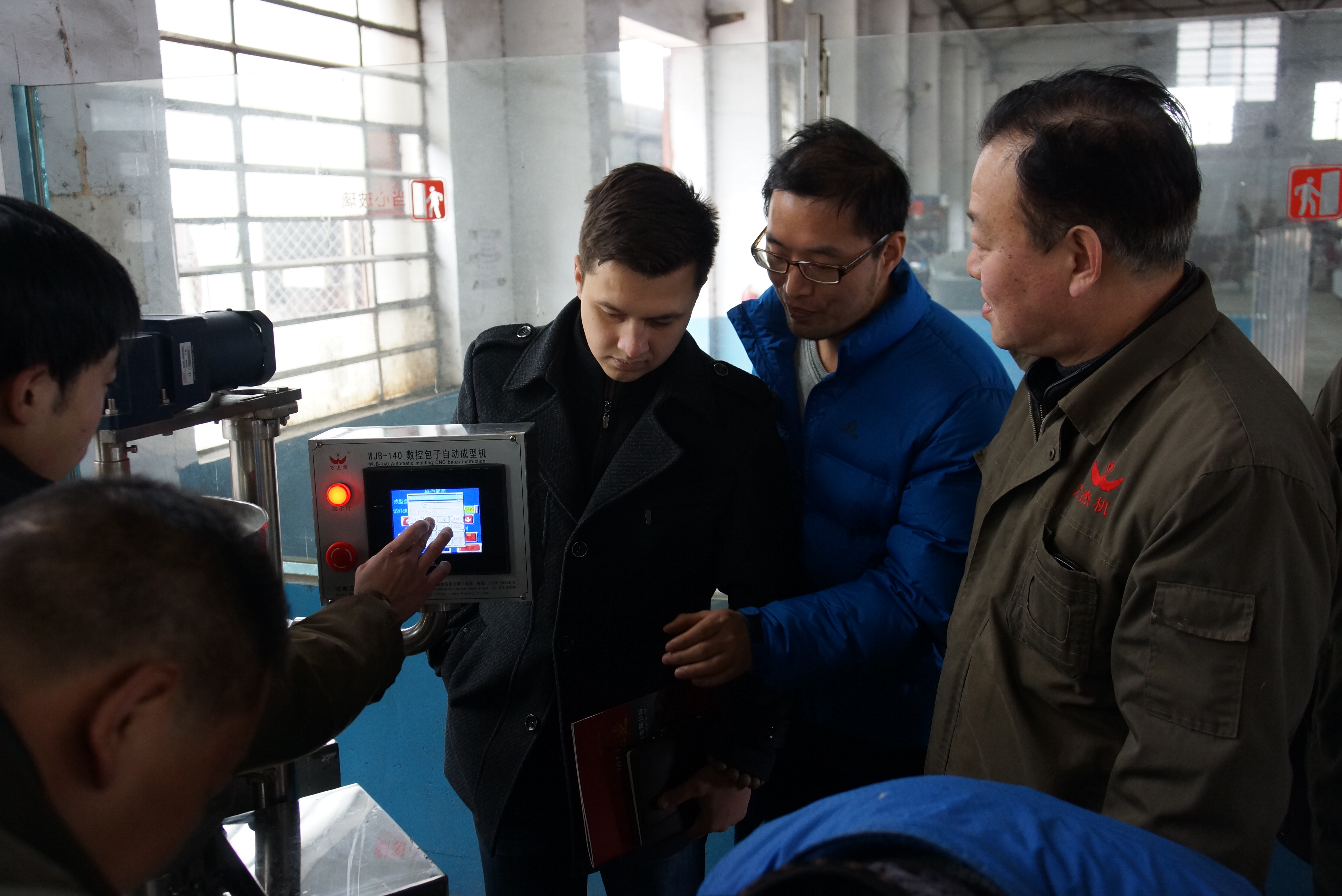 客人們參觀了我公司所生產(chǎn)的饅頭系列、包餡系列、蒸制系列、鮮濕面系列等食品機(jī)械加工設(shè)備及加工現(xiàn)場,營銷總監(jiān)王軍航向客人們介紹了公司創(chuàng)新的研發(fā)技術(shù)和工藝、產(chǎn)品的主要技術(shù)性能特點(diǎn)。特別是公司新研發(fā)出的全自動(dòng)智能制面機(jī)只需8.37秒就實(shí)現(xiàn)了從面粉直接轉(zhuǎn)化成面條的整個(gè)過程,吸引了客人們的高度關(guān)注并產(chǎn)生濃厚興趣,客人們親自體驗(yàn)制面機(jī)的操作過程并品嘗面條口感。隨后,客人們觀看了我公司的宣傳片和設(shè)備加工運(yùn)行視頻等。